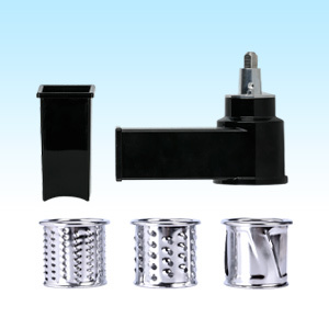 Příslušenství k Chef-3: šoupátko, strouhací komora, jemný strouhací válec (3 mm), hrubý strouhací válec (7 mm), plátkovací nože. prečítať celé