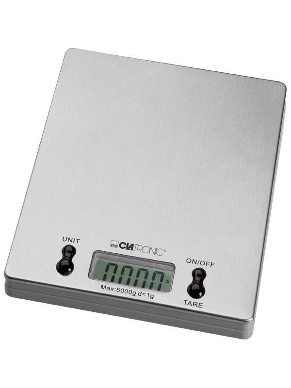 Kuchyňská digitální váha s extra plochým displejem je vyrobena z nerezového povrchu. Je vybavena snadno čitelným LCD displejem pro zobrazení hodnot. Zvládne zvážit maximálně 5 kg po 1g krocích. Přepínat lze mezi jednotkami kg a lb. Výhodou je funkce automatického vypnutí a funkce TARE pro nulování při přidávání ingre