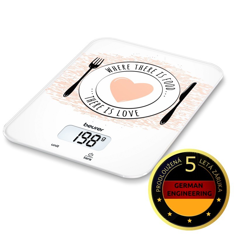 kuchyňská váhasnadno čitelný displej LCDfunkce automatického vypnutímax. zatížení 5 kgrozlišení 1 gfunkce tarapřepočet z g / oz / lb: oz / ml / fl.ozmoderní ovládánísnadno se čistí povrch ze sklaLCD displej: 4,6 x 2,4 cmvelikost číslic: 20 mmultra plochá pouze 1,65 cm vysokáindikace...