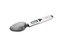 Nerezová kuchyňská vážící lžíce s plastovou odnímatelnou částí určená pro domácí použití.