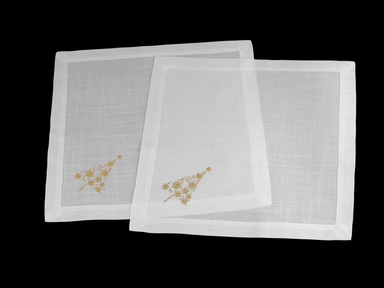 Stylové vánoční prostírání zdobí zlatá lurexová výšivka stromečku. Prostírání slavnostně doladí vaši domácnost, hodí se do tradičního i moderního stylu interiéru. Je jednostranné, s pevným, širokým okrajem. Chrání stůl před skvrnami a poškrábáním. Prostírání je i skvělým dárkem pro vaše blízké, kteří si potrpí na kvalitní a estetické doplňky do domácnosti.
