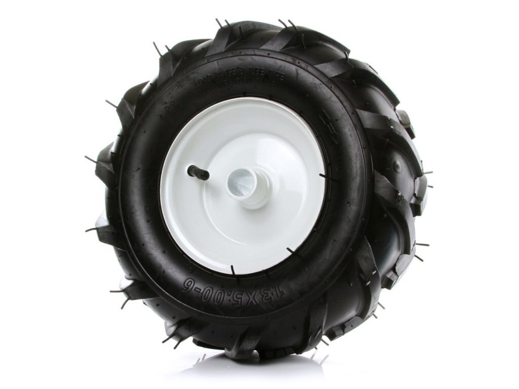 Univerzální náhradní nafukovací kolo 13x5,00-6 pro motorový kultivátor a jiné zemědělské stroje. Kolo má po obou stranách otvor pro aretační čep.
