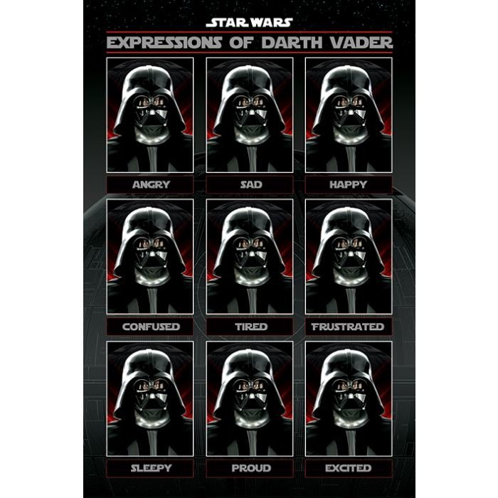 Stylový plakát s výrazy lorda Darth Vadera pro každý okamžik! Skvělý doplněk pro zútulnění domácnosti, herny i pracovny každého fanouška Hvězdných válek - sci-fi ságy Star Wars! prečítať celé