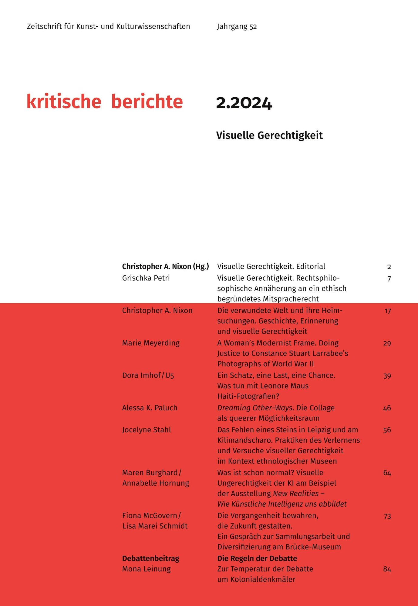 Kritische Berichte : Zeitschrift für Kunst- und Kulturwissenschaften / Jahrgang 52, Heft 2.2024
