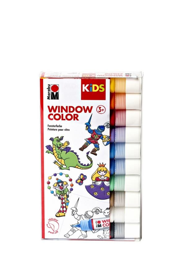 Brilantní, transparentní a zářící barva na okna Marabu KiDS Window Color je odnímatelná barva na okna na vodní bázi a lze ji aplikovat na hladké povrchy, jako je sklo, zrcadla, dlaždice nebo fólie. Sada obsahuje: 10 x 25 ml barva okna (013 oranžová, 019 žlutá, 038 rubínově červená, 046 středně hnědá, 055 ultramarínová modrá tmavá, 062 světle zelená, 070 bílá, 095 azurově modrá, 251 fialová, 073 obrysy černá), 1 x malířská šablona Din A4 s 18 vzory.