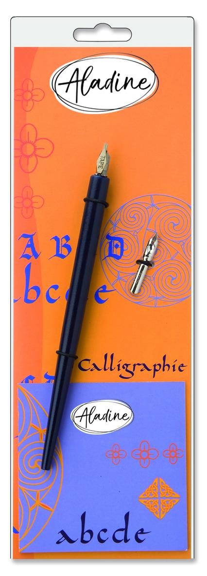 Násadka s kaligrafickým perkem s rezervoárem neboli zásobníkem. Zásobník je velmi výhodný, protože nemusíte tak často namáčet do inkoustu. Součástí balení je náhradní perko. Tip: Namočte perko do inkoustu Aladine, když se hrot rovnoměrně potáhne inkoustem, můžete začít psát. Používejte vždy kvalitní papíry vyšší gramáže.