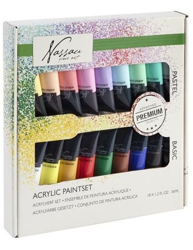 Obsahuje: 18 x 36 ml barev (základní+ pastelové)