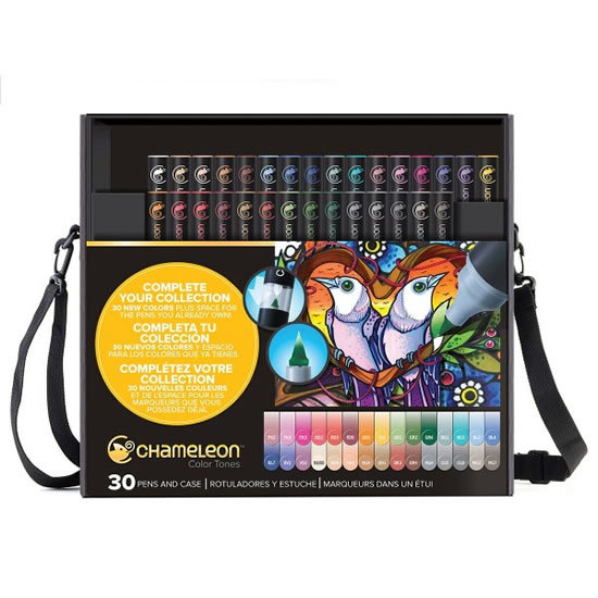Tónovací fixy Chameleon s plastovým obalem - 30 barev, pinzeta, sada náhradních hrotů, pouzdro s popruhem, instruktážní brožura v AJ. Chameleon Color Tones Pens je inovativní fix na alkoholové bázi, který umožní měnit tón v jedné barvě pomocí integrovanéh prečítať celé