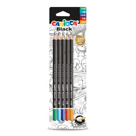 Sada trojhranných grafitových tužek Carioca Black. Sada obsahuje tužky s tuhami tvrdosti 2H (4), H (3), HB (2), B (1), 2B (0). Vysoce kvalitní tuha, odolná při pádu. Snadno se gumuje a ořezává. Vhodné do škol i kanceláří. Nevhodné pro děti do 3 let. prečítať celé