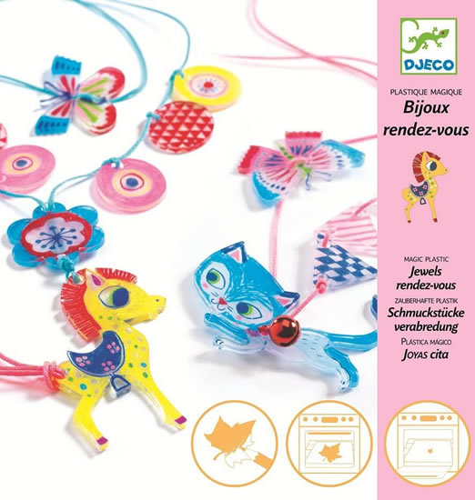 Sada na výrobu 2 náhrdelníků originální metodou. Na jednu stranu fólie si děti podle předlohy překreslí obrázky, poté je vystřihnou a nechají s pomocí dospělých krátkou chvíli zapéct v troubě. Tato sada je určena pro děti od 7 do 13 let. prečítať celé