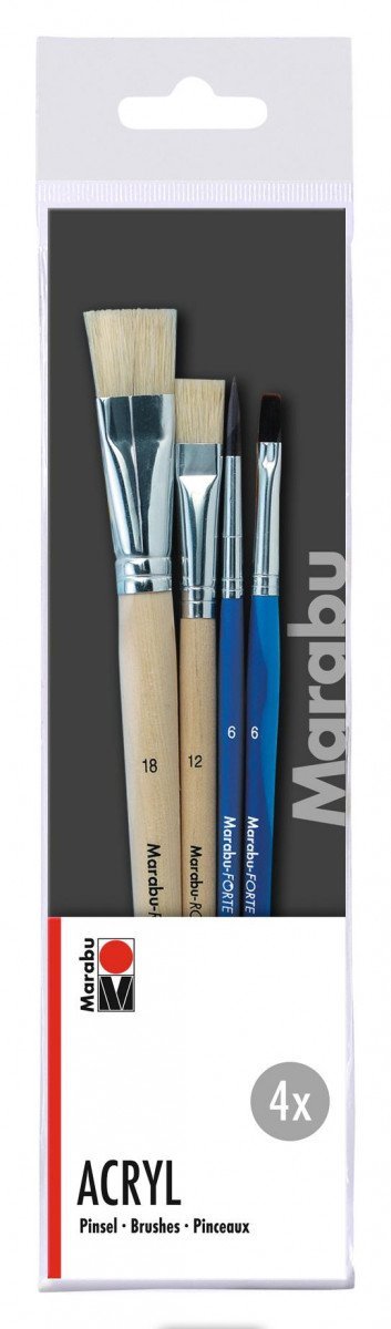 Sada 4 štětců pro akrylové barvy. Vhodné i pro olejové barvy. Rukojeti vyrobeny z dřeva z odpovědného lesního hospodářství. Robust plochý č.12 a č.18, Forte plochý č.6, Forte kulatý č.6 prečítať celé