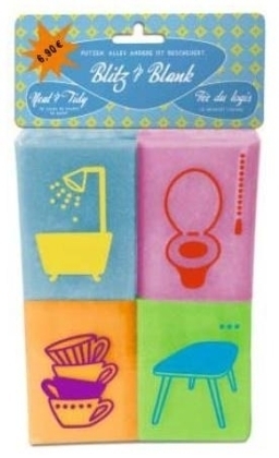 Mit Blitz & Blank liegt nun endlich das unentbehrliche Hilfsmittel für den anstehenden Frühjahrsputz vor. Das Prinzip ist einfach und ungemein praktisch: Jeder Schwamm ist mit einem eindeutigen Piktogramm auf der Oberseite gekennzeichnet und hilft auch so den Putzscheuen, sich im Haushalt zurechtzufinden.