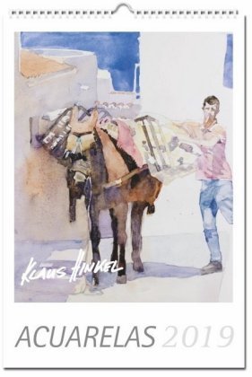 Bereits zum elften Mal erscheint der Andalusien-Kalender von Klaus Hinkel mit Impressionen der spanischen Provinz - dieses Mal mit dem Titel Acuarelas 2019. Ortschaften, Menschen, Tiere und Details des spanischen Alltags werden in den Aquarellen eingefangen.