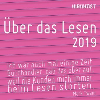 Ob Leser oder Buchhändler, Romanliebhaber oder Lyrikbesessene, Autoren oder Verleger - jeder kommt bei diesem Kalender auf seine Kosten. Für jede Woche des Jahres 2019 gibt es ein Zitat, das abtrennbar ist und als Postkarte verschickt werden kann. Die Sammlung reicht von humoristischen Zweizeilern über kurze Romanausschnitte bis hin zu tiefgründigen Sinnsprüchen über die Sache, die uns allen am meisten Spaß macht: das Lesen.