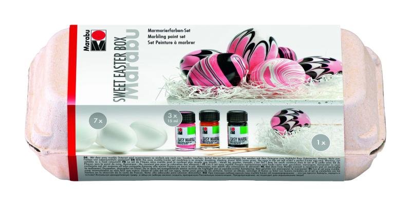 Tato sada barev Sweet Sweet Box obsahuje vše, co potřebujete k vytvoření roztomilých kraslic ve mramorovaném designu.