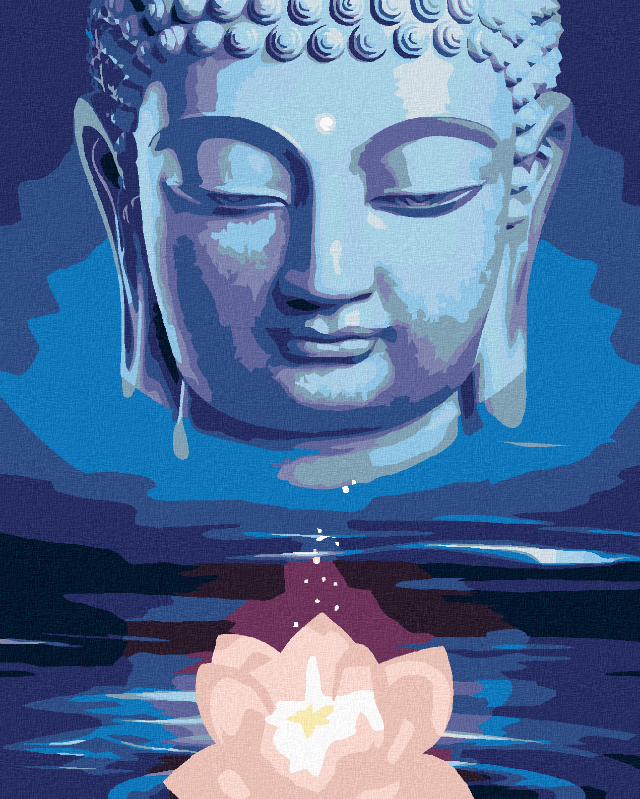 Malování podle čísel - MODRÝ BUDDHA S LOTOSEM - 40x50 cm, vypnuté plátno na rám