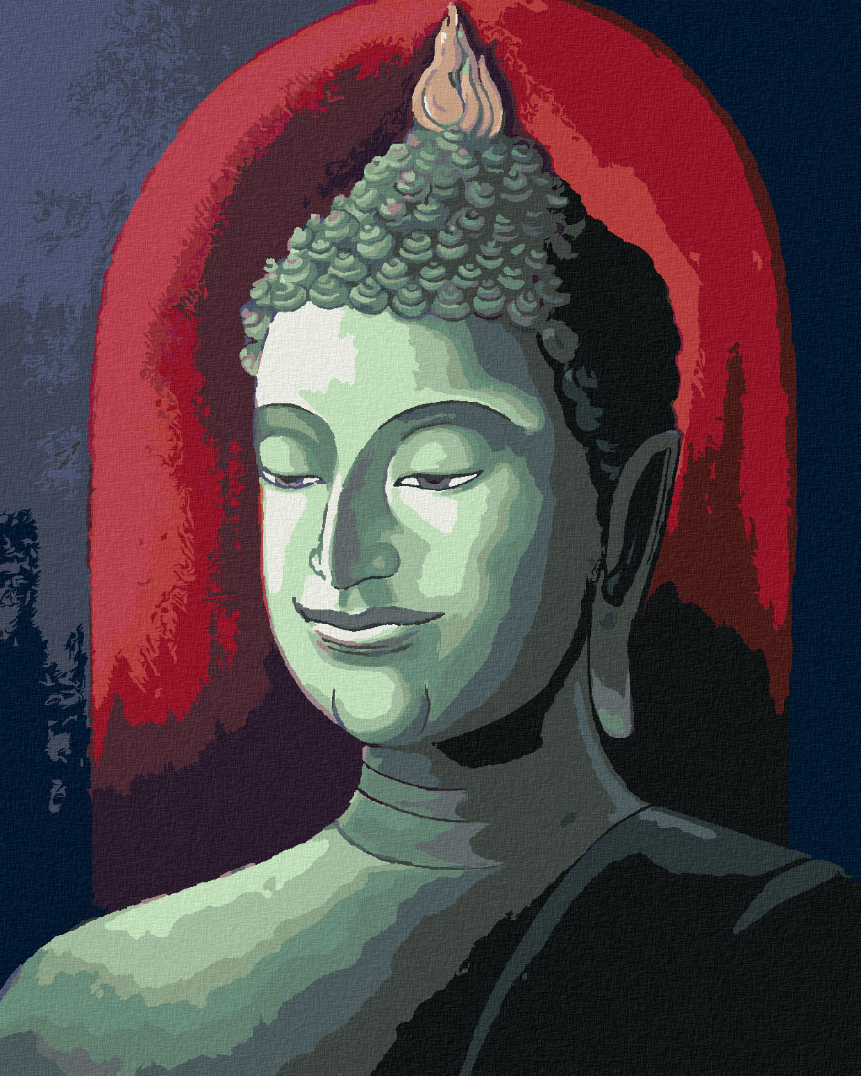 Malování podle čísel - BUDDHA NA ČERVENÉM POZADÍ - 40x50 cm, vypnuté plátno na rám