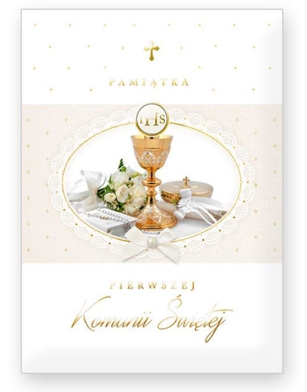 Książeczka okolicznościowa z okazji pierwszej komunii świętej. Twarda okładka ze złotą folią. prečítať celé