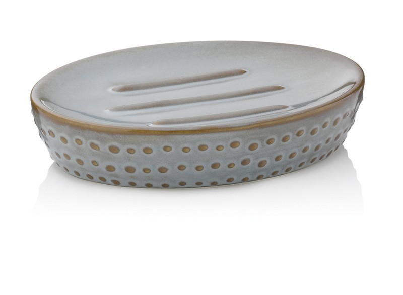 Speciální miska na mýdlo ze série Dots. Vizuálně šedohnědý exemplář je něčím výjimečný. Takzvané "tečky" jsou vystouplé a jsou tedy cítit, když držíte mýdlenku v ruce. Rozměry: délka 12 cm, výška 2,5 cm Keramický, lesklý, 12x9 cm, 2,5 cm v prečítať celé