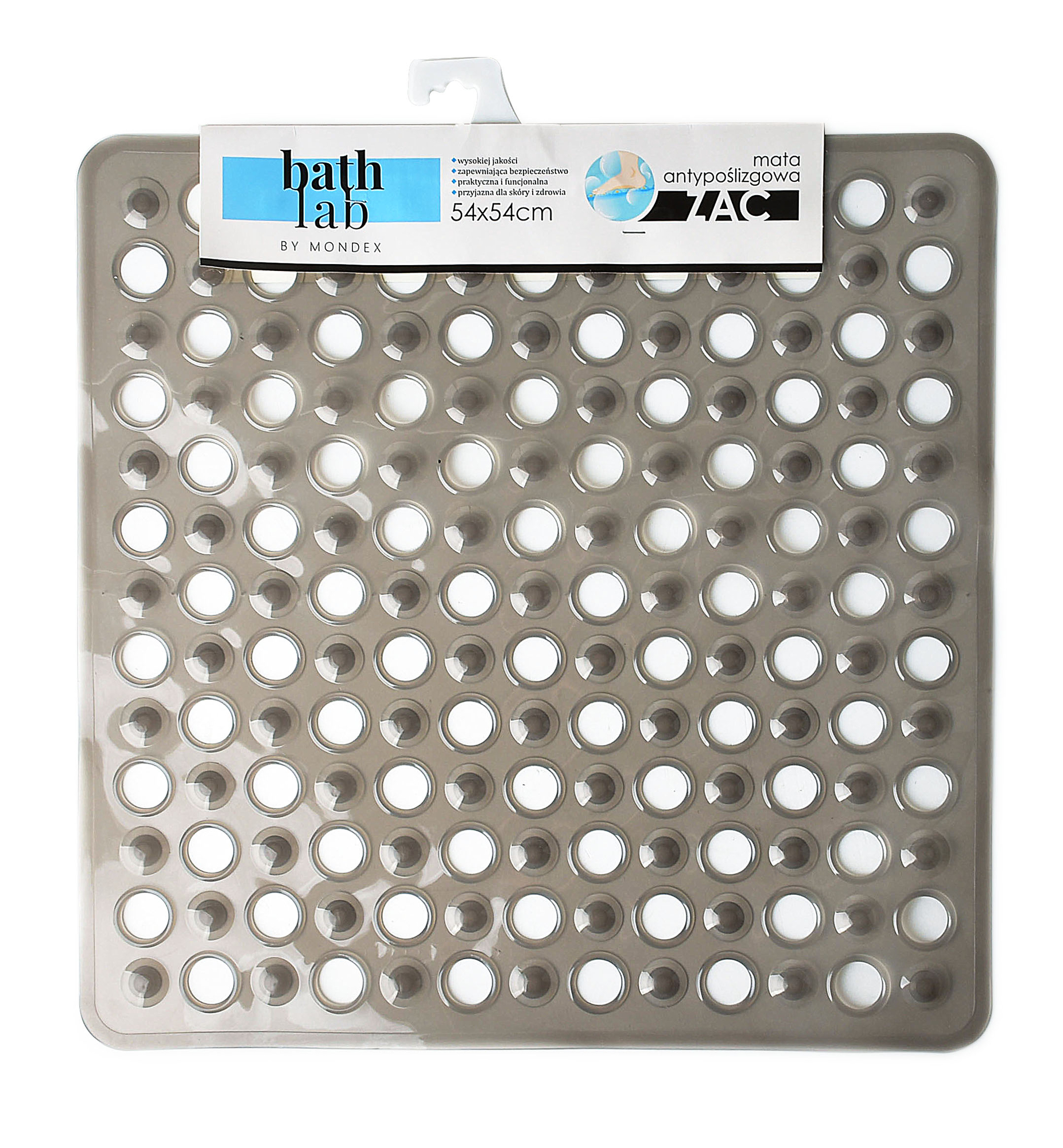 Mata łazienkowa z serii ZAC GREY marki BATHLAB by MONDEX. Doskonała do kabin prysznicowych i wannowych w domach, siłowniach, szpitalach, hotelach i innych obiektach mieszkalnych. Mata posiada mocne przyssawki, które powodują iż jest nieruchoma. Subtelny fakturowany wzór na...