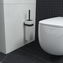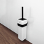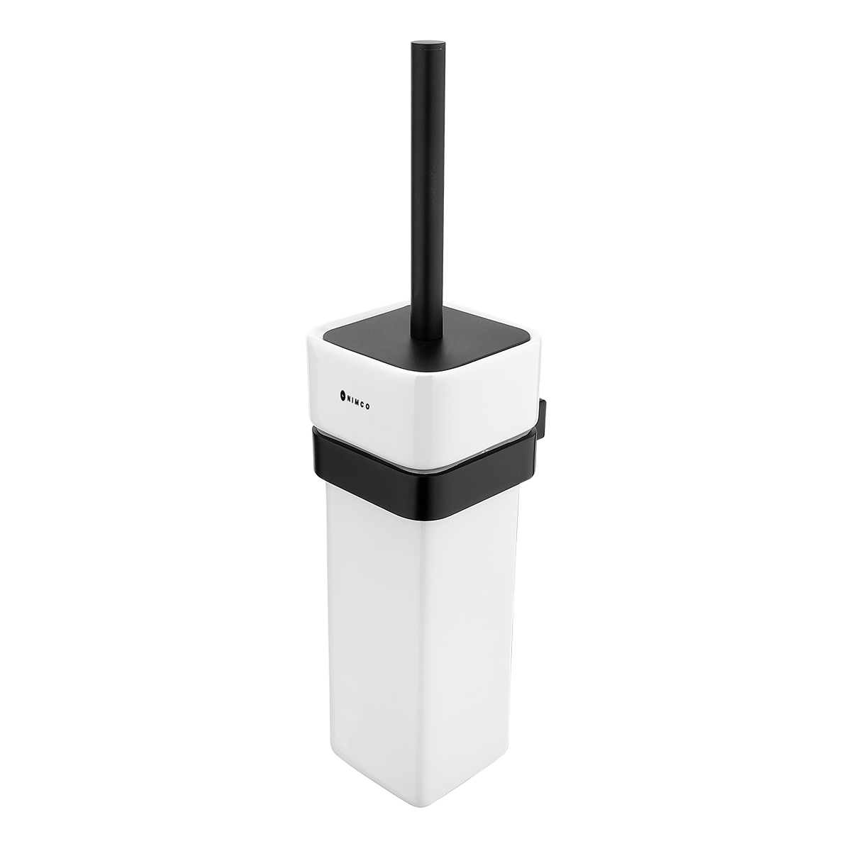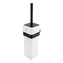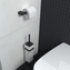 WC štětka černá s držákem na zeď, hranatá rukojeť, vysoká nádoba keramická je skvělým doplňkem k WC. Minimalismus, elegance, nadčasovost? To vše může představovat černá v interiérech. Černá by neměla koupelně vládnout, nicméně v kombinaci s bílou vytvoří unikátní prostor, který se neokouká. Stále...