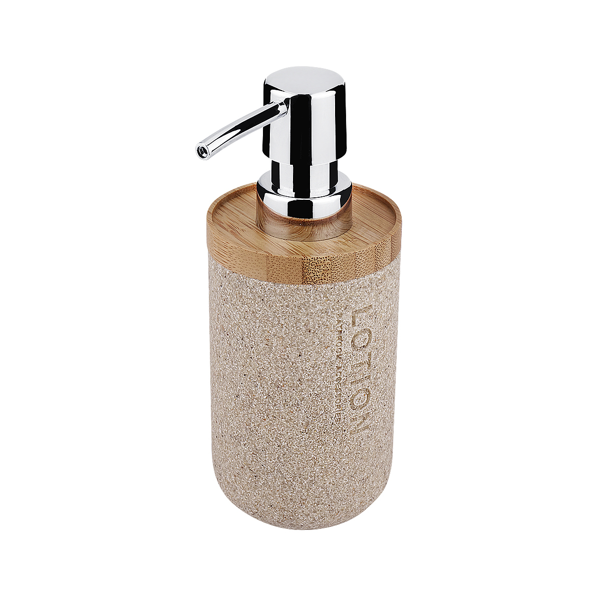 Dávkovač tělového mléka bambus a pískový kámen, pumpa plast je skvělým doplňkem do koupelny. KORA v písčité béžové barvě vás zahřeje na první pohled. KORA je návrat k přírodě. Do popředí se derou přírodní materiály i odstíny. Dřevo, bambus, kameny a písek ve své naturální podobě vnášejí do prostoru koupelny uklidňující atmosféru a tolik potřebný pocit tepla a pohody.