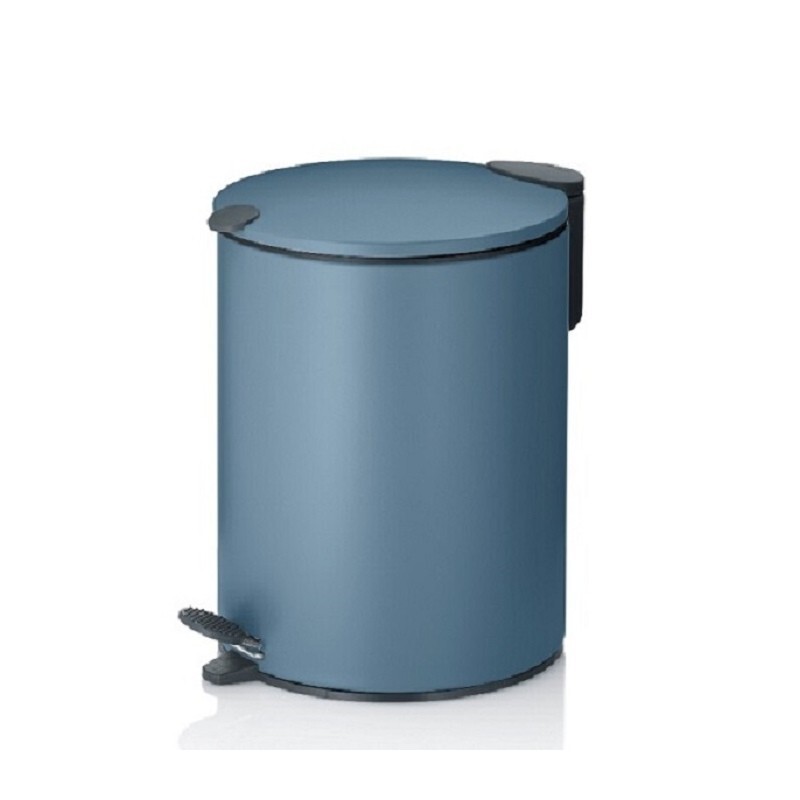 KELA Kosmetický koš kovový kouřově modrý Tiché zavírání, výška 23cm, průměr 17cm, obsah 3 litry KL-23609