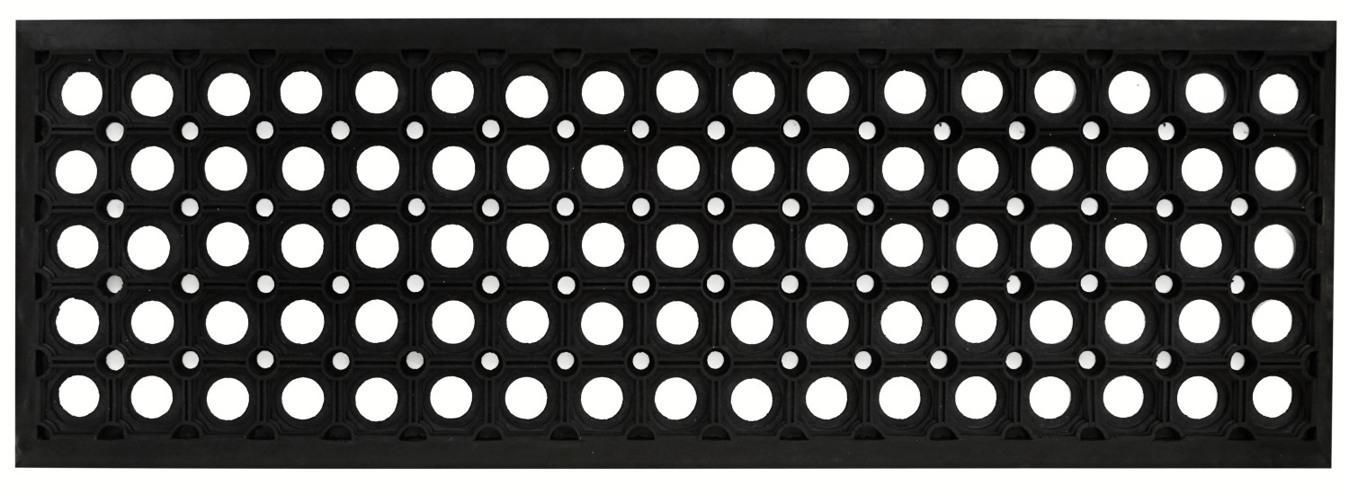 Kvalitní gumová rohož – rohožka na schody si poradí s nečistotami, blátem nebo sněhem na obuvi. Je ideální volba pro rohožku prvního kontaktu před vstupem do místnosti nebo domu. Rohožka je protiskluzová, je vyrobena z kvalitní gumy. Lze ji umístit venku. Je odolná proti mrazu a UV záření. Snadná údržba.