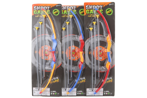 Plastový luk se třemi šípy s přísavkami. Z karty lze vystřihnout terč. Rozměry luku 59 cm. Rozměry balení cca 21 x 65,5 x 3 cm. Věk 3+ prečítať celé