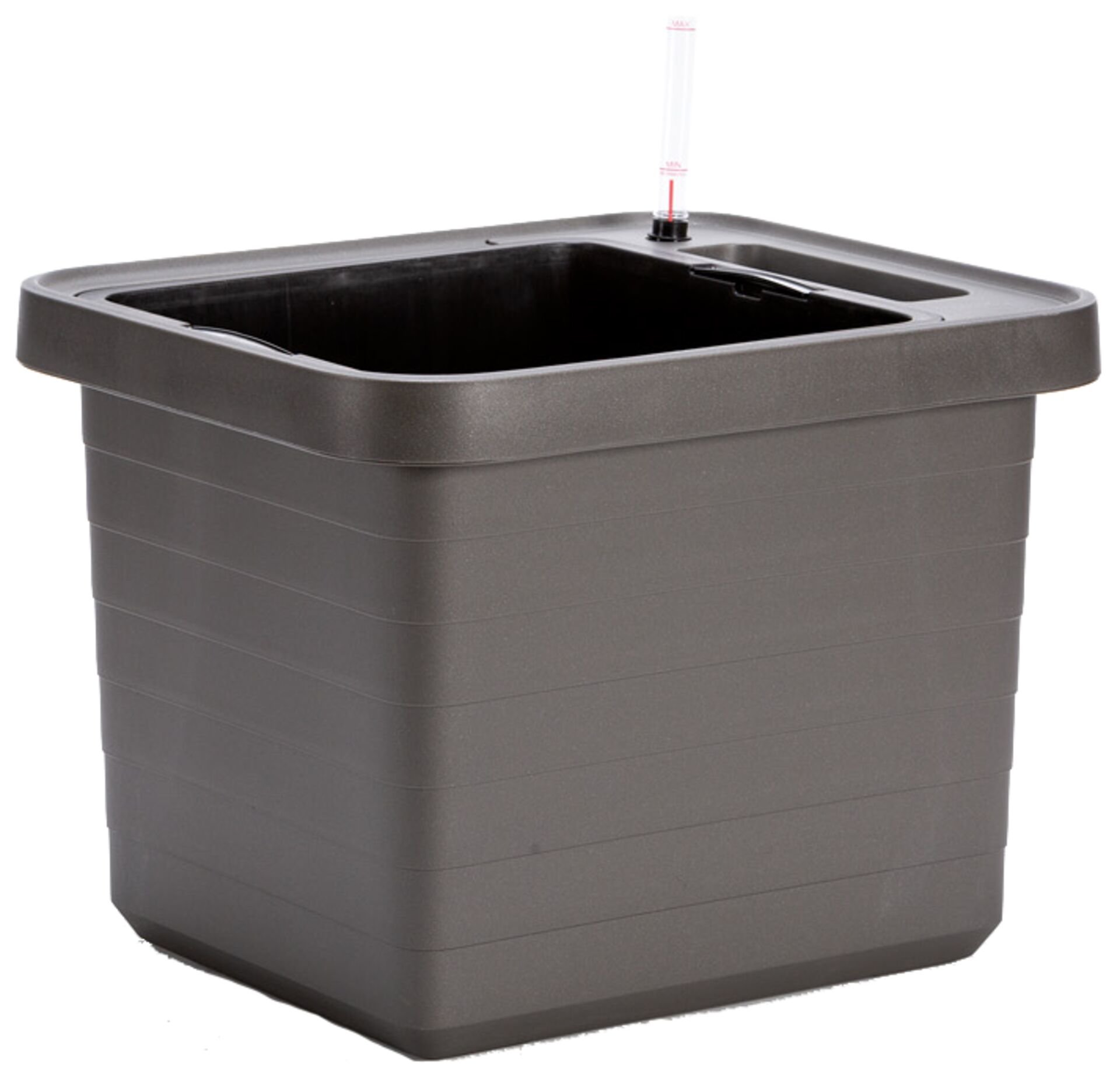 Velkoobjemový samozavlažovací truhlík v novém designu. Uvnitř je samostatná nádoba s otvorem pro pevné uchycení opory pro rostliny. O rostliny je tak skvěle postaráno. Součástí jsou i 4 kolečka pro lepší manipulaci s truhlíkem.