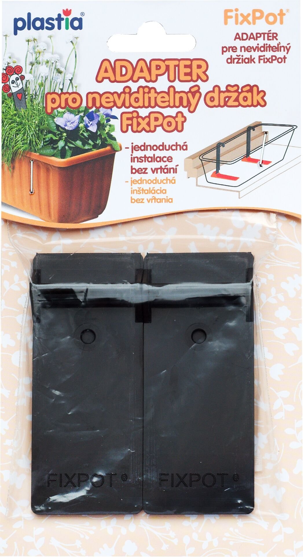 Adaptér k držáku na truhlík FIXPOT, který slouží k nalepení na parapet. Držák umožňuje neviditelné uchycení truhlíku na parapetu bez vrtání do fasády. Zabraňuje spadnutí truhlíku při jeho přetížení nebo při špatných klimatických podmínkách. Držák je možné použít u většiny plastových oken. Držák Fixpot je určen pro výšku truhlíku 10 - 19 cm a pro délku do 60 cm, je-li délka více než 60 cm, použijte další držá k.