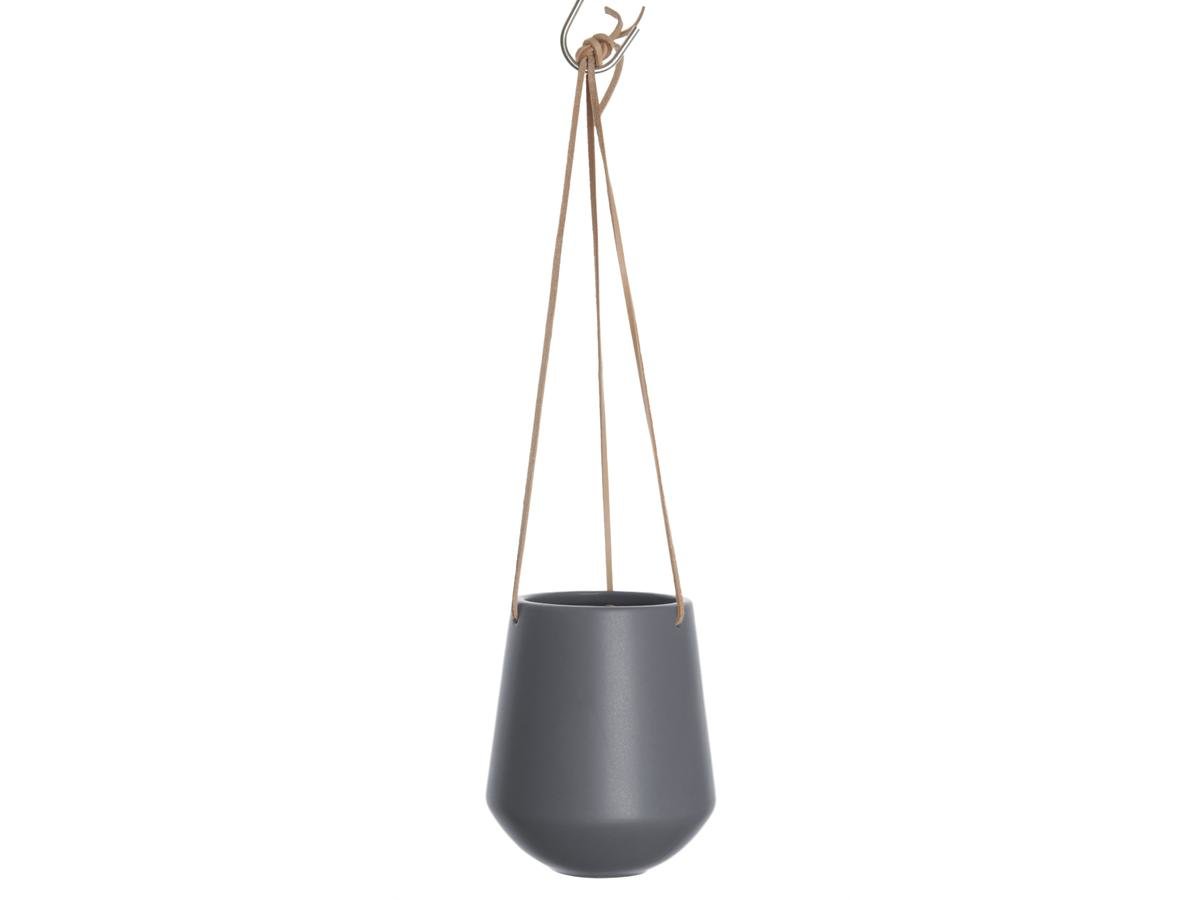 Závěsný šedý středně velký květináč.
