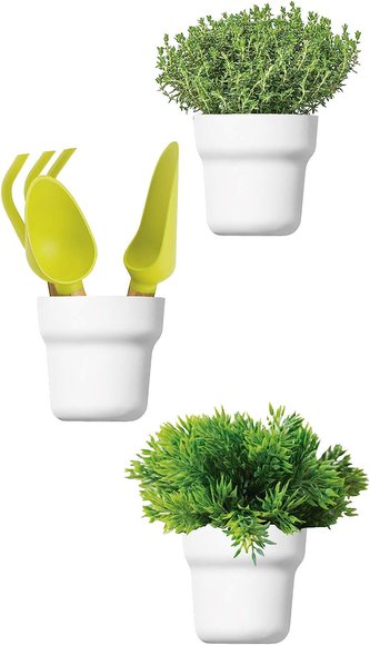 -Sada 3 víceúčelových modulárních květináčů na rostliny a drobné bytové doplňky-Pomocný kus obsahuje lepicí prvek, takže jej můžete snadno přilepit na jakýkoli rovný neporézní povrch nabízí možnost zavěšení pomocí šroubů na zeď.-Sada se skládá ze 3 nádob z abs, 3 vodních filtrů a 3 pomocných kusů pro zavěšení na zeď.