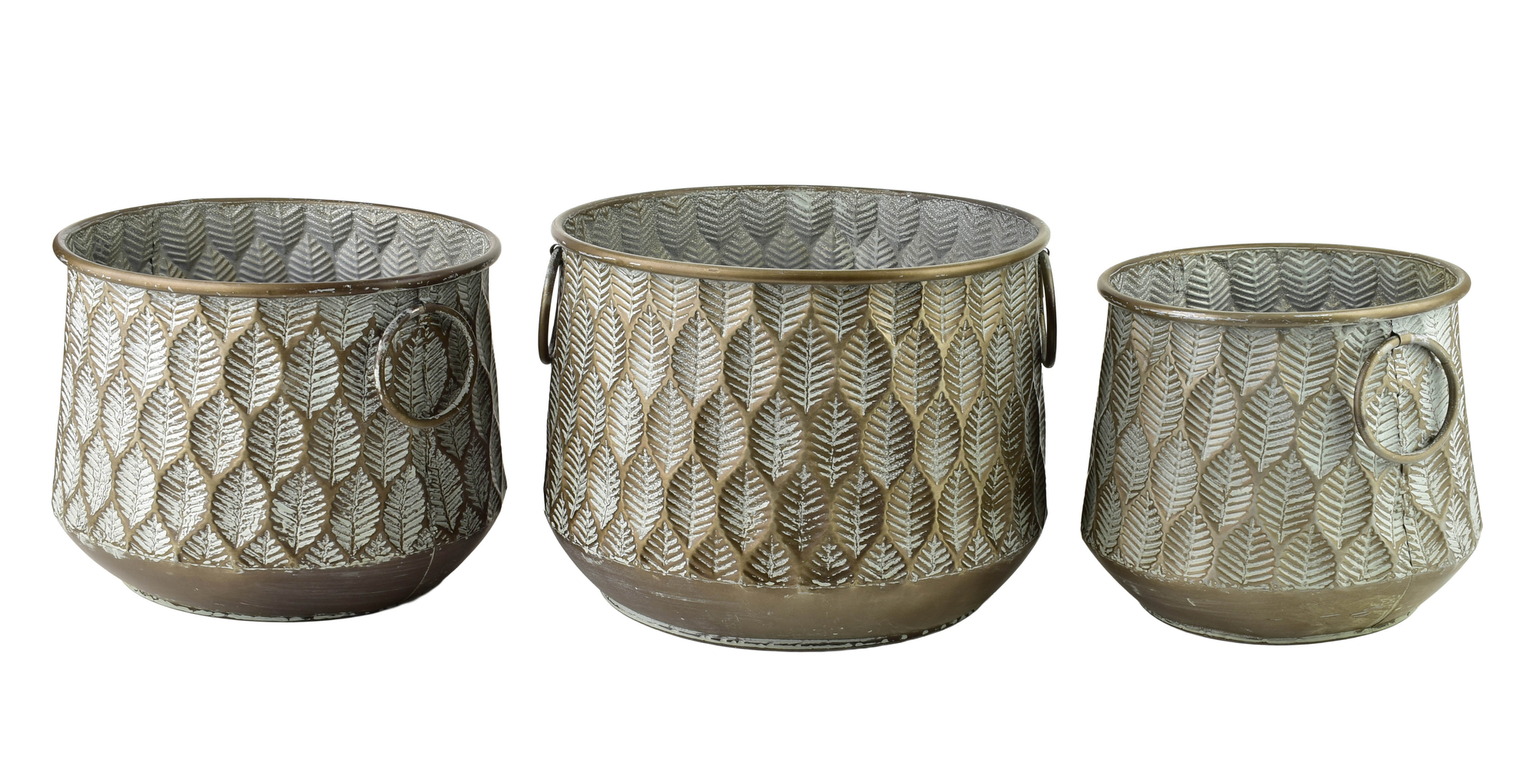 MARINA DARK Komplet 3 osłonek Komplet 3 osłonek MARINA DARKMateriał: metalKolor: ciemny, elegancki brąz z fakturą liściStyl: nowoczesny, minimalistyczny, loftowyZastosowanie: osłonki na doniczki, element dekoracyjny do salonu, biura czy na tarasOsłonki MARINA DARK wyróżniają się prostym, a...