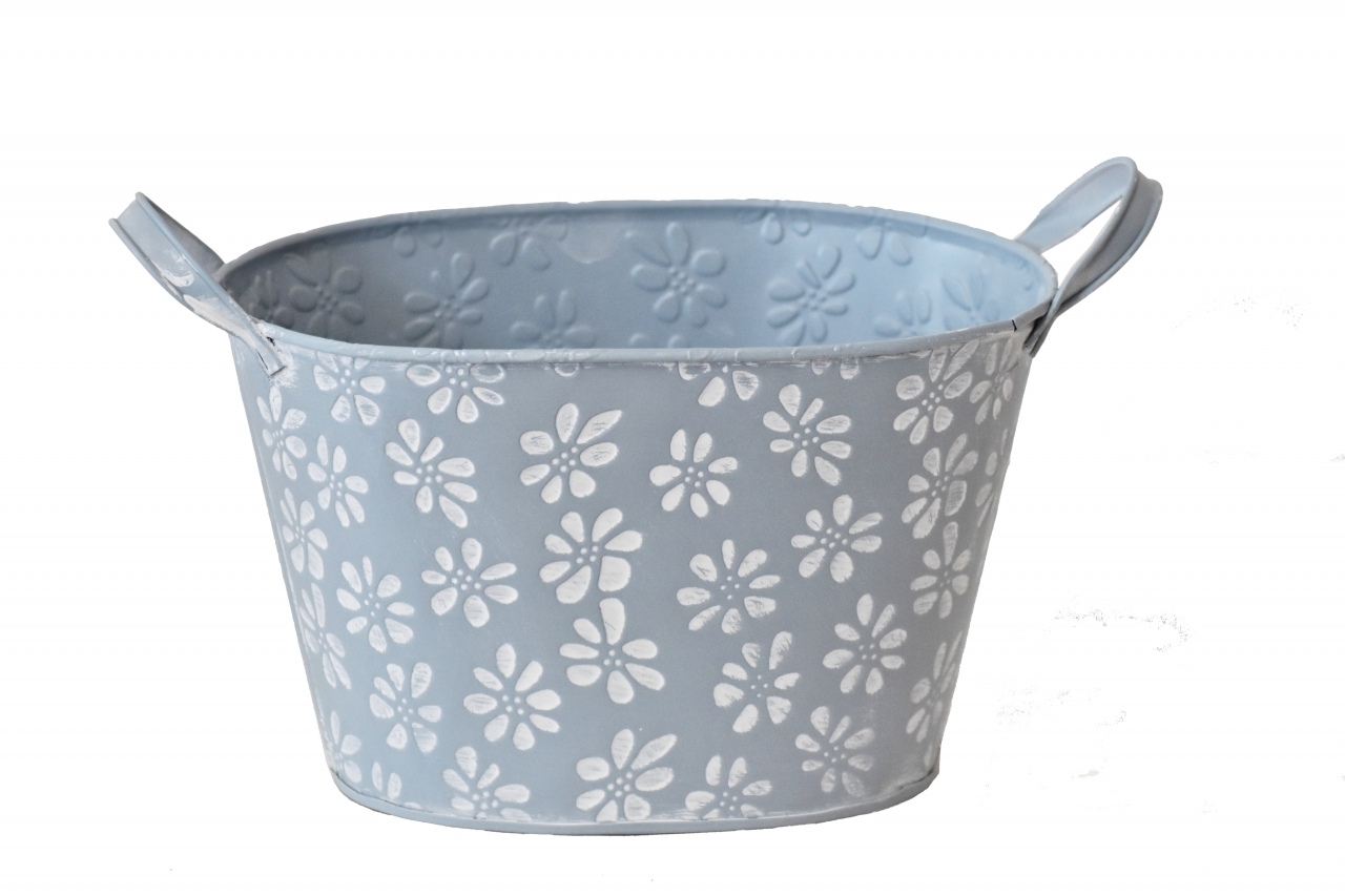 Plechový květináč Flowers 17,5x29x16,5 cm, modrý