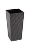 Vysoký plastový květináč v designu ratan s matným povrchem. Součástí květináče je vyjímatelná plastová vložka černé barvy (viz. fotka pod textem) s uchy pro snadnou manipulaci. Do plastové vložky se rostliny zasadí a plastová vložka se vloží do vnějšího květináče. Květináče jsou v hodné do...