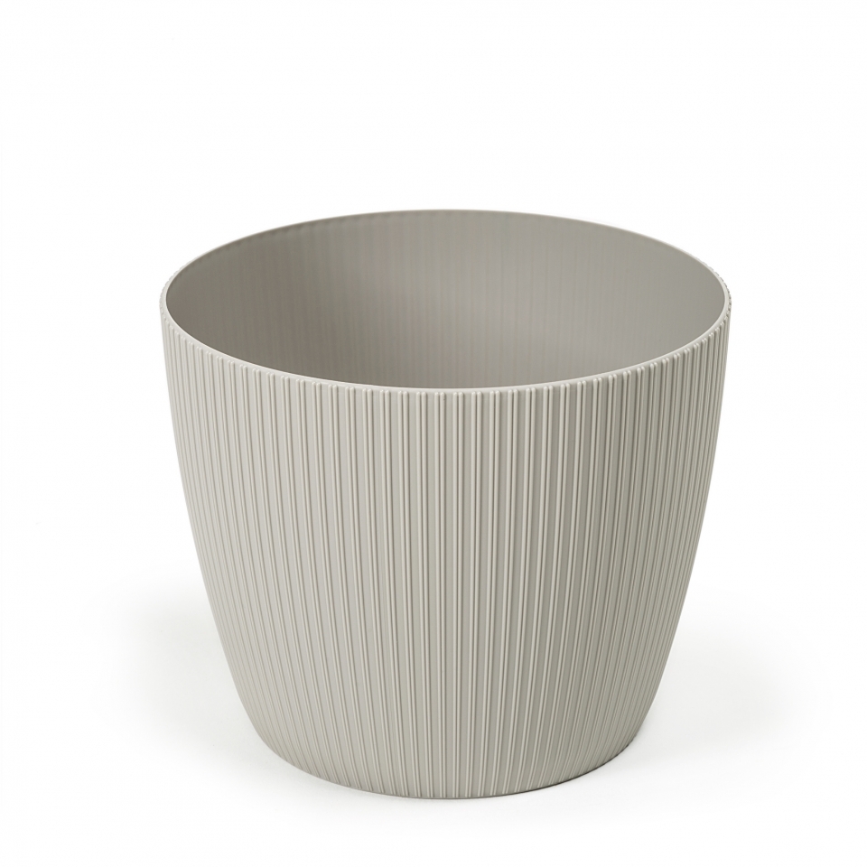 Plastový květináč Magnolia Jumper z vnější strany zdobený proužkem. Květináče jsou vhodné do interiérů i ven. Barva: taupe Rozměr: výška 14 cm průměr 16 cm prečítať celé