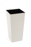 Vysoký plastový květináč v designu ratan s matným povrchem. Součástí květináče je vyjímatelná plastová vložka černé barvy (viz. fotka pod textem) s uchy pro snadnou manipulaci. Do plastové vložky se rostliny zasadí a plastová vložka se vloží do vnějšího květináče. Květináče jsou v hodné do...