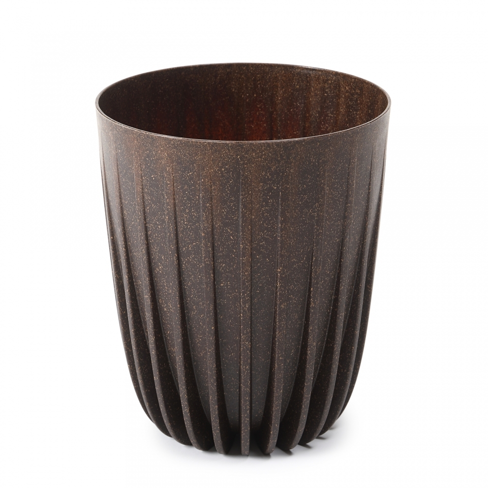 Plastový květináč z kolekce Mira eco coffee. Moderní vysoký květináč s žebrováním. Součástí květináče je černý plastový vklad sloužící k odtoku přebytečné vody pod tento vklad.
