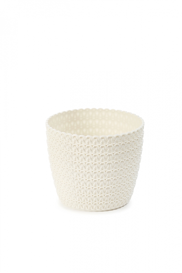 Plastový květináč Magnolia Jersey z vnější strany zdobený pleteným dekorem. Květináče jsou vhodné do interiérů i ven. Barva: krémová Rozměr: výška 31,5 cm průměr 36 cm prečítať celé
