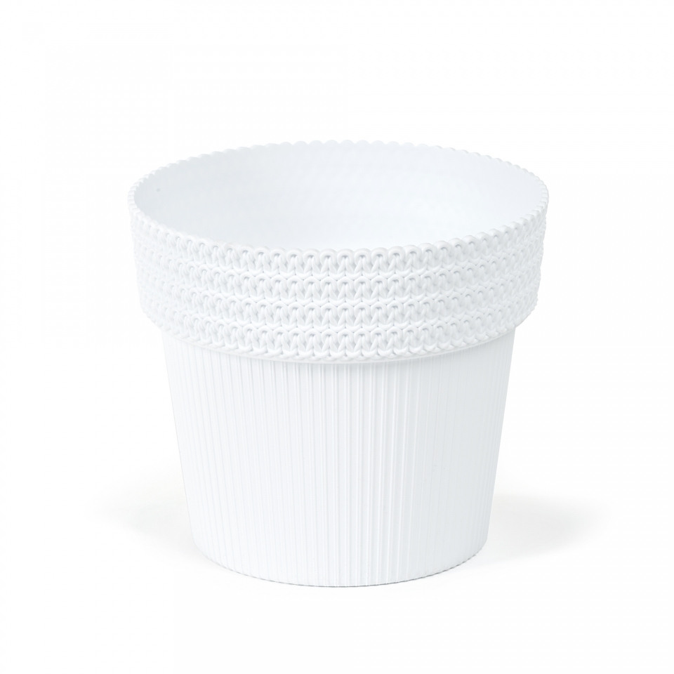 Plastový květináč Pola Jumper z vnější strany zdobený proužkem a pleteným okrajem. Květináče jsou vhodné do interiérů i ven. Barva: bílá Rozměr: výška 17,5 cm průměr 20 cm prečítať celé