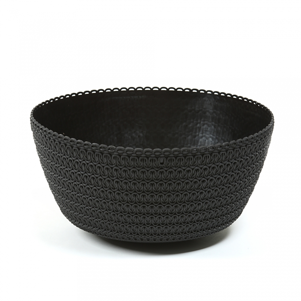 Plastový květináč Bowl Jersey z vnější strany zdobený pleteným dekorem. Květináče jsou vhodné do interiérů i ven. Barva: černá Rozměr: výška 13,2 cm průměr 24 cm prečítať celé