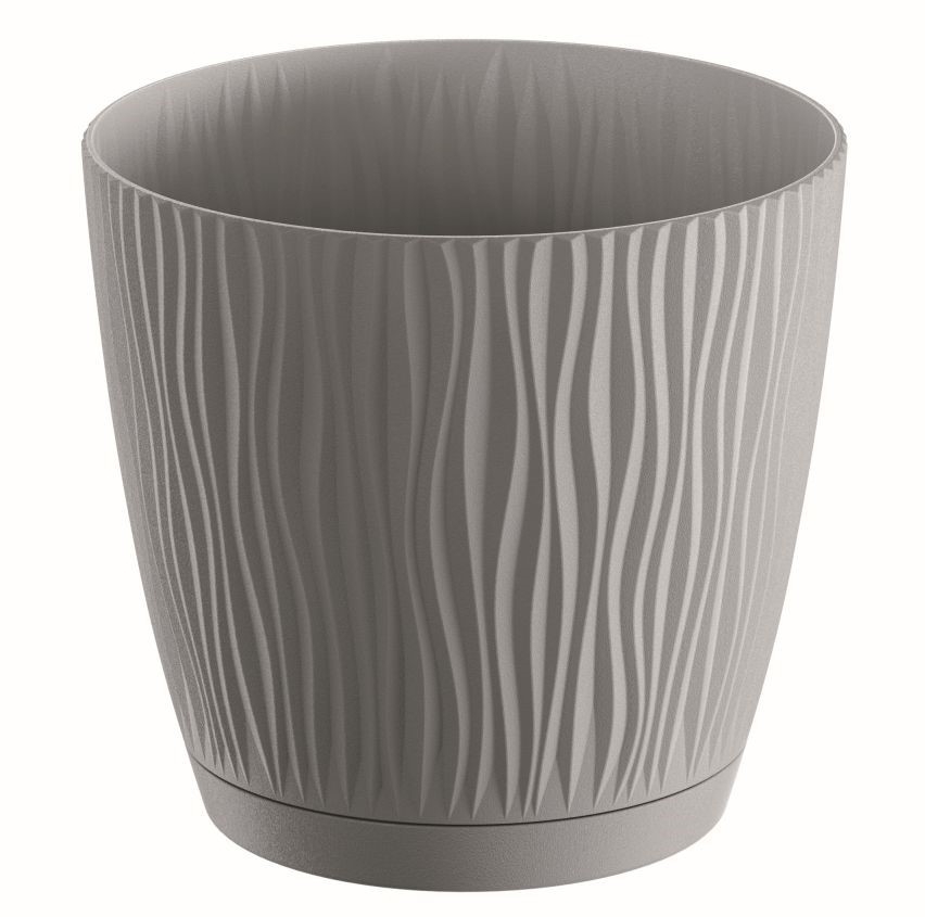Plastový květináč s miskou Sandy P 14,9 cm šedý kámen