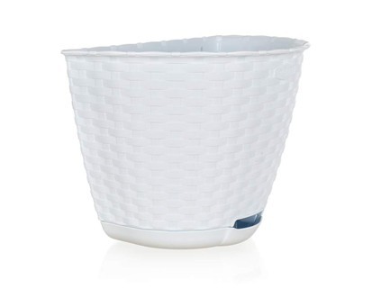 Nástěnný půlkulatý květináč v bílé barvě je zajímavý svým moderním designem, proto se hodí na terasy, balkony, ale lze jej použít i uvnitř domu. Mísa květináče má dno opatřené plastovým výstupkem (zásobníkem vody), který slouží pro samozavlažování květin. Rozměry: 30 x 20 x 22 cm, objem 5 litrů.