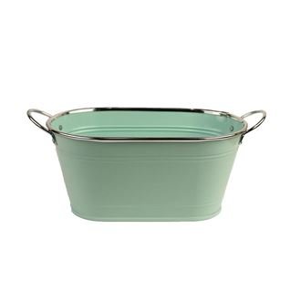 Kovový obal na květiny. Obal má rozměry 22,5 x 13 cm, výšku 11 cm. Celková šířka s uchy 26,5 cm, výška 12,5 cm. Barva : zelená. Materiál : kov. prečítať celé