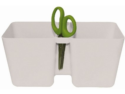 Dvojitý květináč TWINS CUBE s originálním tvarem a s otvorem na nůžky. Ideální pro pěstování bylinek doma. Sada obsahuje nůžky Herbs Cut se speciální trojitou čepelí. Hmotnost 245 g. Barva - bílá. Objem 2,5 l. Materiál - plast, kov. Rozměry - výška 12 cm, šířka 24,4 cm, hloubka 11 cm.