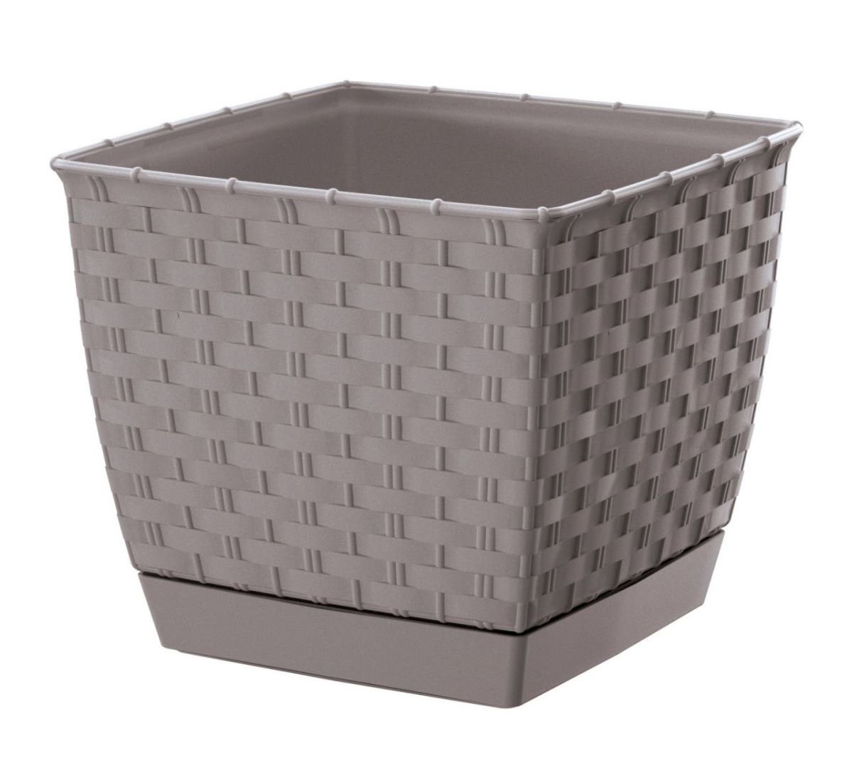 květináč RATOLA SQUARE je plastový květináč v imitaci ratan čvtercového tvaru květináč má integrovanou odnímatelnou podmisku rozměry 22 x 22 x 18.9 cm, objem 6 litrů barva mocca EAN 5905197076607 prečítať celé
