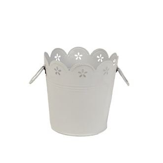 Květináč plechový.Rozměry : průměr 12 cm, výška 10 cm. Dno má průměr 9 cm.Barva : bílá.Materiál : plech. prečítať celé