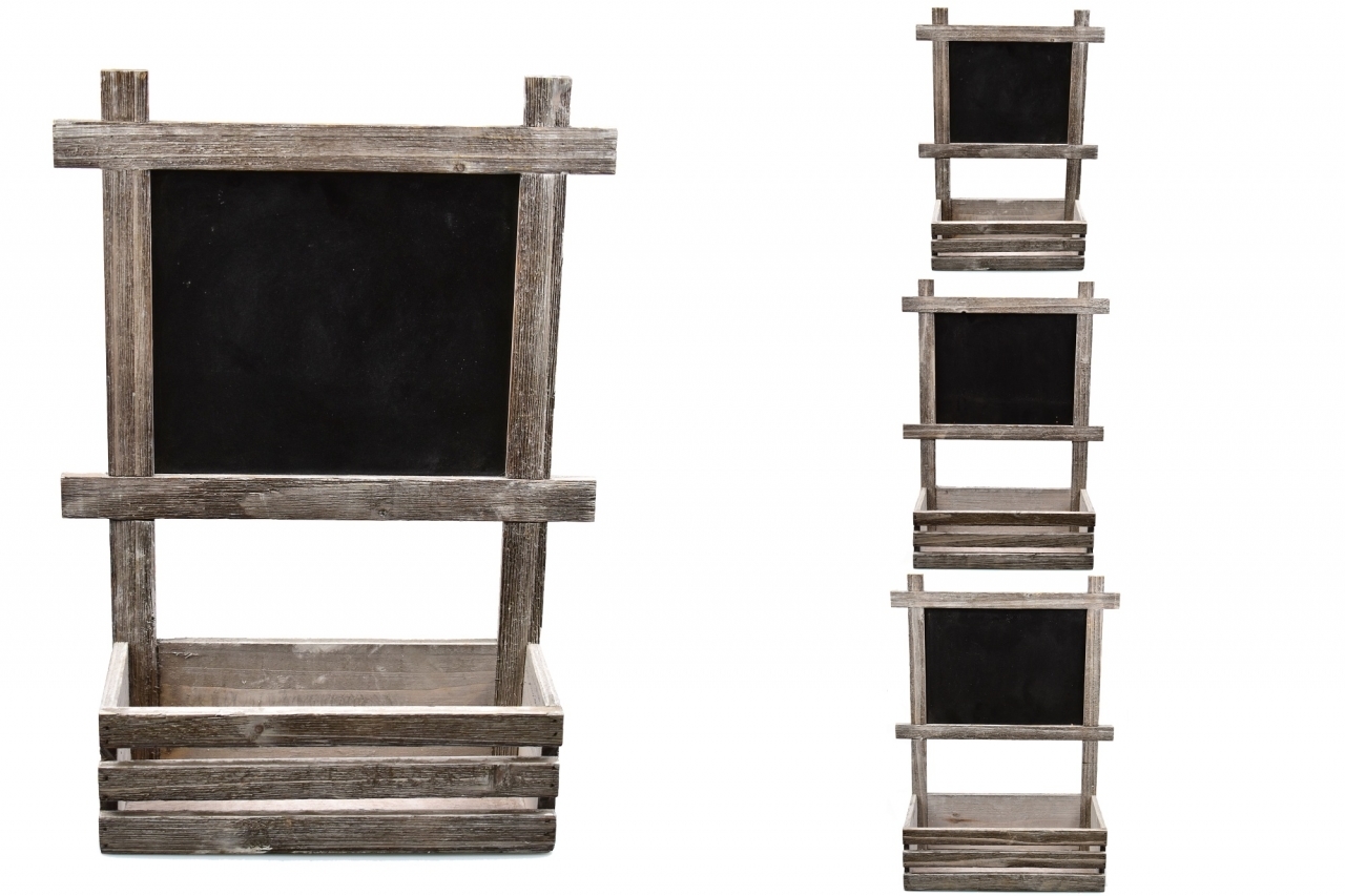 Sada dřevěných květináčů s černou popisovací tabulkou. V sadě jsou 3 ks, různých rozměrů.Materiál: dřevoRozměry:velkývýška celkem 46 cmšířka celkem 35,5 cmhloubka 15,5 cmvýška květináče 10 cmšířka květináče 30,5 cmhloubka 15,5 cmstřednívýška celkem 42,5 cmšířka celkem 32,5 cmhloubka 13 cmvýška...