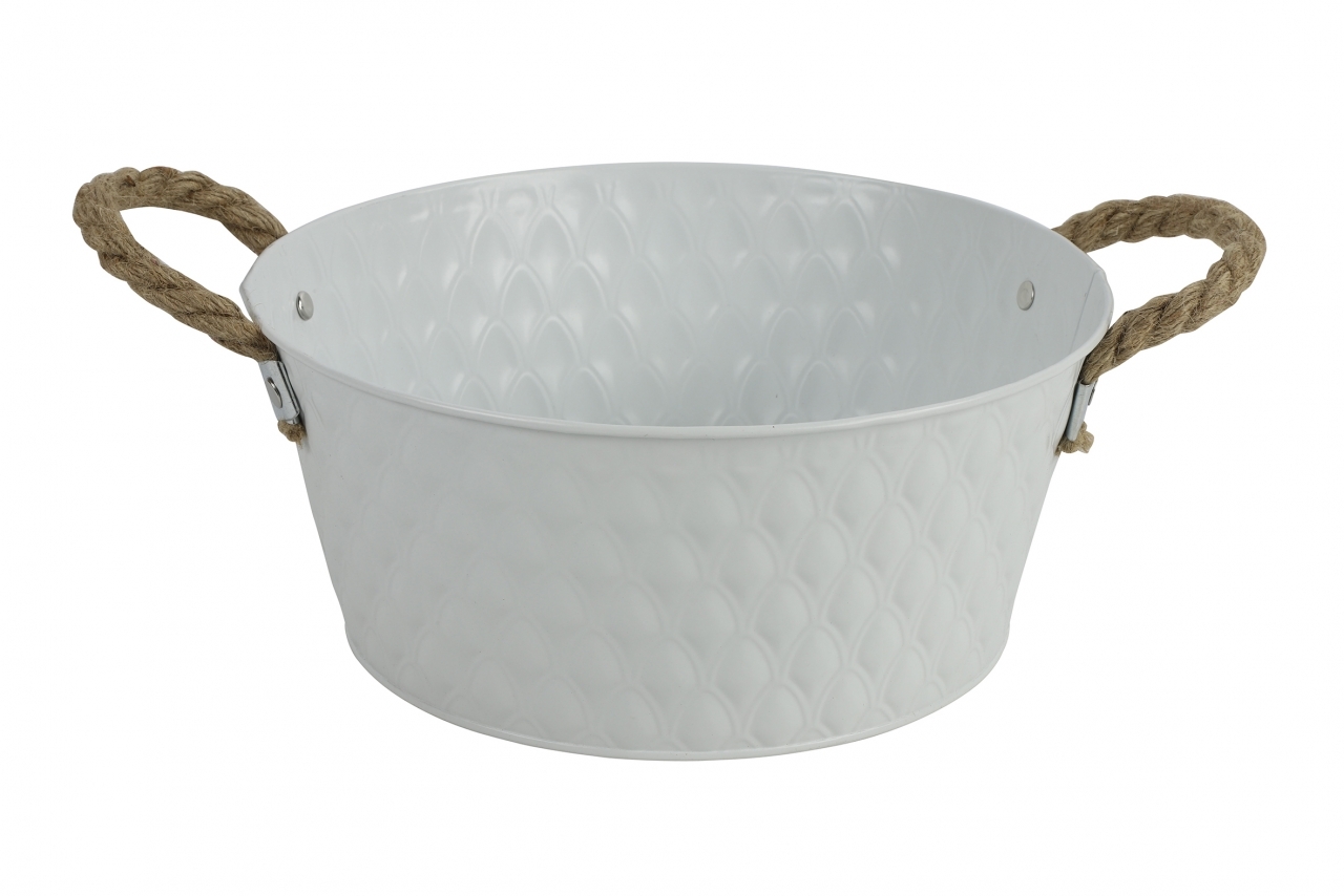 Plechový kyblík s uchy Sannah M bílý 25x25x11 cm